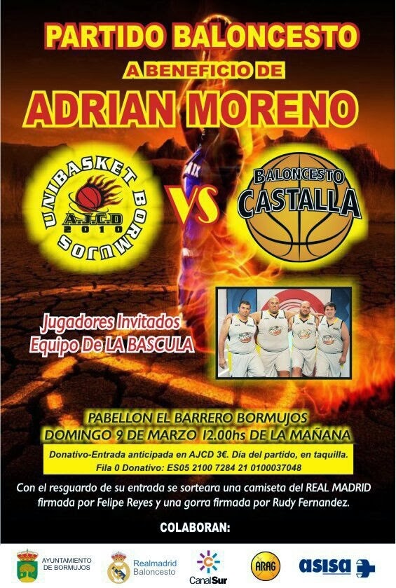 Las entradas podrán adquirirse por adelantado en AJCD, y en taquilla el mismo día del partido. Del mismo modo, se ha habilitado una cuenta bancaria para colaborar con un donativo Fila 0 (ES 05 2100 7284 21 0100037048). Con el resguardo de la entrada, se sorteará una camiseta del Real Madrid firmada por Felipe Reyes y una gorra con la firma de Rudy Fernández. Al acto, además, acudirán los participantes del concurso televisivo de La Báscula, de Canal Sur, además de la colaboración de entidades como Asisa o el Centro Comercial Airesur. De esta manera, la web del Anres vuelve a la actividad y, además, con un componente muy solidario: el de ayudar a encestar muchas canastas por la salud del joven Adrián. Ánimo y todos a llenar el pabellón.