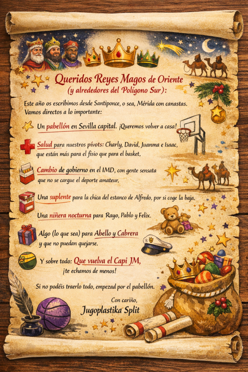 Un pabellón de baloncesto en Sevilla capital, aunque sea modesto, aunque huela a alcanfor, aunque el marcador funcione a pedales. Con eso prometemos portarnos bien todo el año.